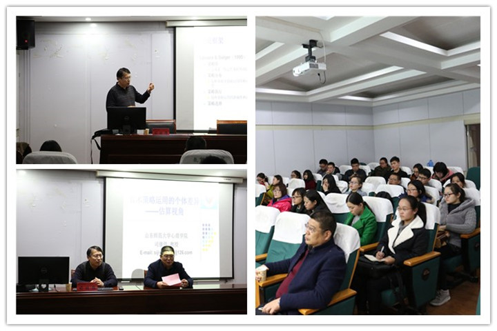 本网讯(教科院 文/房聪 图/叶舒婷)11月25日 下午4时许,山东师范大学博士生导师山东师范大学心理学教授,博士生导师司继伟教授在教科院三楼学术交流中心进行了主题为“算术策略运用的个体差异-估算视角”的学术报告。心理教育学院的部分师生参加了此次报告,本次报告由葛明贵教授主持。