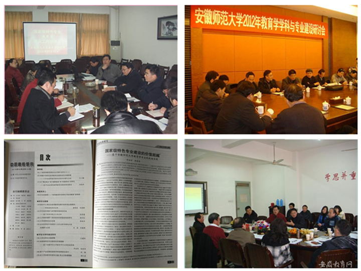 何为教育学的专业特色?团队成员积极思考,在《中国高教研究》2011年第八期上发表《国家级特色专业建设的价值超越——基于安徽师范大学教育学专业的改造实践》一文。该文认为,专业设置及其建设总是建立在一定的价值建构基础上。特色专业绝对不是在同类专业比较中的形式独特,不是“以特色求发展”的生存拼搏,而是有了准确社会定位的价值担当,并由此体现出来的精神气质与光华。该文系统地回答了建设什么样的特色专业,如何建设成特色专业等问题,为教育学专业建设提供了思想定位、建设路径和发展方向。