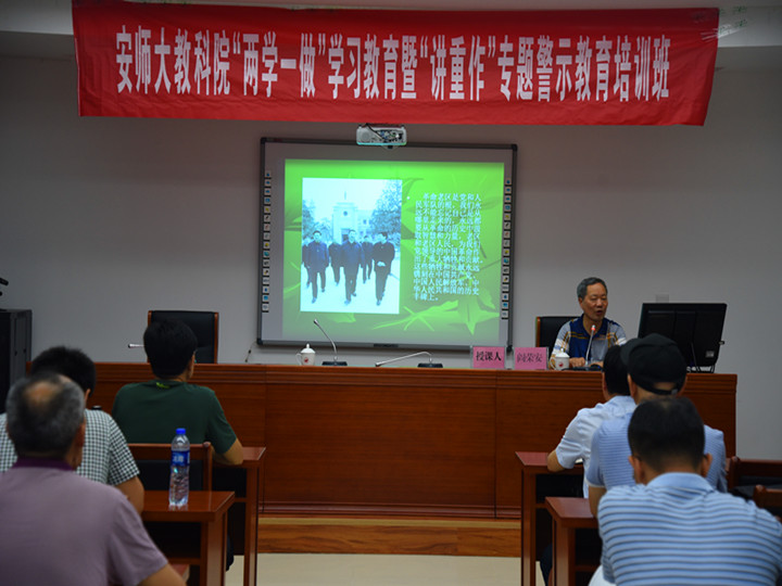 本网讯(教科院 马兴、刘和海)为扎实推进“两学一做”学习教育常态化制度化,提升“讲政治、重规矩、作表率”专题警示教育效果,大力加强党内政治生活、政治文化、政治生态建设,8月26-27日,教科院在革命老区金寨举办了“两学一做”学习教育常态化制度化暨“讲重作”专题警示教育培训班。学院教工党员参加了此次培训。