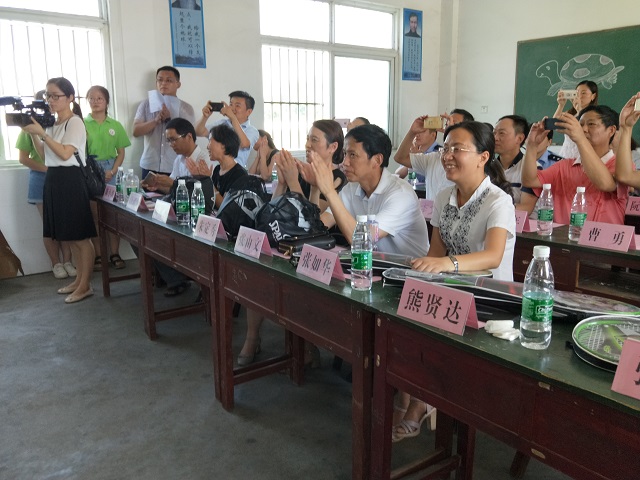 文艺汇演开始前,各位领导在大学生志愿者们的引导下,参观了留守儿童亲手制作的美术及手工艺作品。随后在教室里,听取志愿者代表对历阳镇“全心全益”大学生村官暑期留守儿童义务辅导团五年来支教活动的汇报。为了丰富农村留守儿童的学习生活,和县国土局举行了图书捐赠活动,共有十余名学生收到了书籍和球拍等爱心物资。