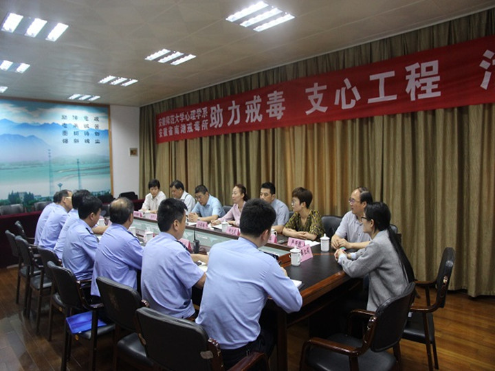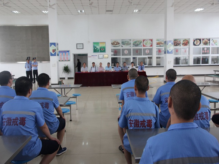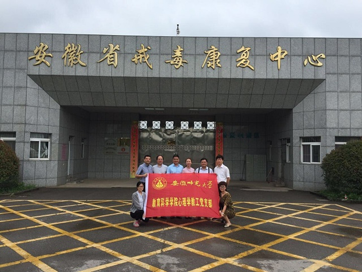 10点,心理学教工党支部成员,在安徽省南湖强制隔离戒毒所党委书记马祖望、所长唐华军、副所长张庆高和相关人员的陪同下,参观了科学戒毒成果展,细致走访了戒毒学员的生活、医疗、训练、教育场所,每到一处党员们与干警讨论,与学员对话。