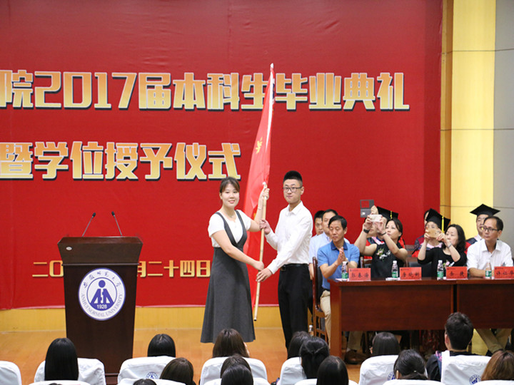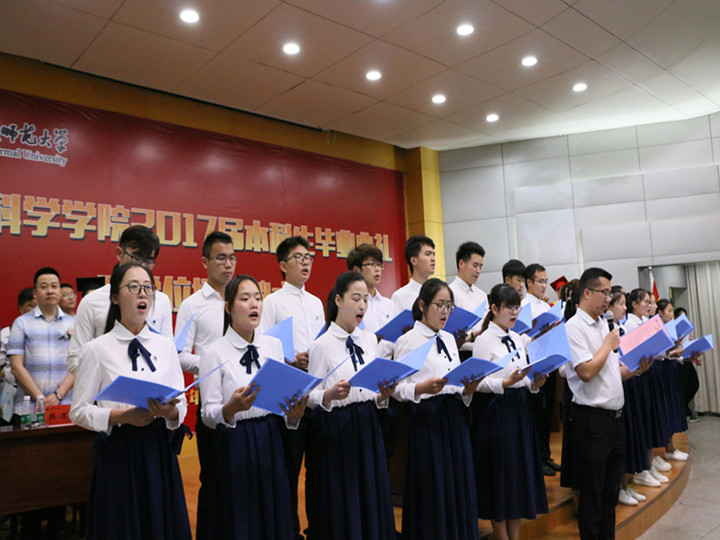 一场盛典,绵绵情谊只念薪火相传。当专业负责人宣读每一个毕业生获得学士学位决定的时候,当每一个教授委员会成员为每一个毕业生拨穗颁证的时候,当低年级同学接过毕业班同学传递的院旗时,当校友联络员接过副校长亲自授予的校友聘书时,当非毕业班同学坐在台下真心祝福学长学姐顺利毕业之时,当我们在签名墙上留下满满的祝福时,当我们高声吟唱“潜岳苍苍,江淮汤汤......莘莘多士,跻兹上痒”时,我们感受到的不仅是收获的喜悦,更是一种师大精神的传承。四年师大行,一生师大情。每一个师大人将继续秉承师大“勤学慎思、质朴谦逊、知行合一、求实求新”优良学风,砥砺前行。