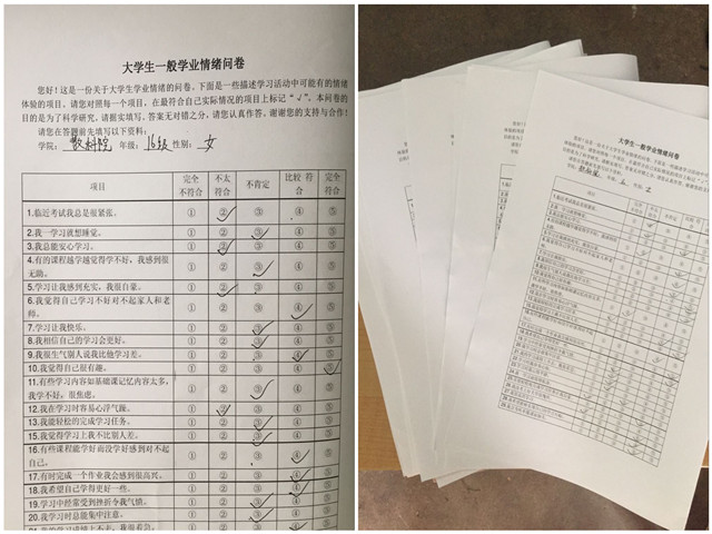 期末考试即将来临之际,学生对自身学业情绪状态认识不清,可能会导致学业受到一定影响。为此,学院组织同学们通过填写“大学生一般学业情绪问卷”来自查自我控制能力、以及学业情绪状态,来克服考试焦虑,从而更好地应对本学期的期末考试。