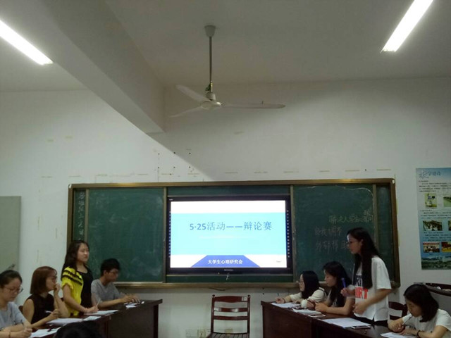5月22日,大学生心理研究会在田楼B座412举行了心理健康知识辩论赛决赛。两队队员围绕着“解决大学生心理问题,自我调节和外部帮助哪个更为重要”的这一辩题展开激烈辩论。双方辩手针锋相对,你来我往,唇枪舌剑,互不相让,令现场气氛不断升温,高潮迭起。通过此次辩论赛,同学们对自我调节和外部帮助对于解决自身心理问题有了更多的了解,帮助同学们更好地选择适合自己的方法来解决心理问题。