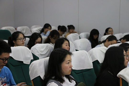 本网讯(教科院 裴扬 范晨晨)为了引导学生党员更好地学习党纪党规,做一名合格的党员,2017年4月16日晚上,我院分党校邀请校纪委副书记、监察处处长陈文兵老师为我院党员教育培训班的学员们作了《切实把党纪党规刻于心践于行》的专题讲座。培训班非毕业班同学参加了这次讲座,讲座由培训班16级辅导副班主任随小莉老师主持。