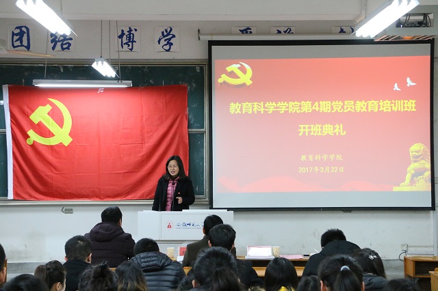 本网讯(教科院 范晨晨 裴扬 莫大贡)为解决毕业班党员教育培训面临的难题,我院第四期党员教育培训班在2016年慕课教学模式基础上,积极探索“课堂派”教学新模式。本期培训班于322日下午在田楼8101正式开班。院党委书记刘晓宇,院党委副书记张如华,分党校班主任莫大贡、副班主任随小莉以及来自本科生和研究生的81名学员参加了开班典礼。典礼由随小莉主持。
