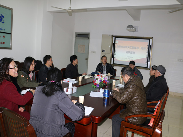 本网讯(教科院 马兴)为推动2017年关工委工作,1月4日,教科院热情接待了校关工委李立功、张树文、檀巧霞一行的调研指导。学院党委书记刘晓宇、院长桑青松、党委副书记张如华、关工委常务副主任王在广、王守恒、龙文祥、关工委秘书马兴参加了此次调研会议。会议由刘晓宇主持。