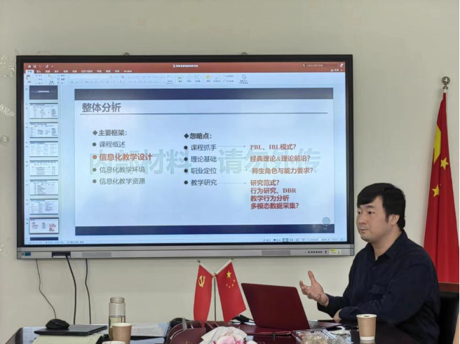 会议伊始,李宜江对与会嘉宾和教师的到来表示热烈欢迎,并简要介绍了学院的基本情况。随后由张帅老师阐述本院《现代教育技术应用》课程的改革方案、题库建设情况以及第四届师范生教育资源设计大赛的筹备进展。紧接着,罗恒教授就题库建设和技术应用方面提出了宝贵的建议。他强调技术问题在题库建设中的重要性,并指出应关注作弊现象的防范。同时,罗教授建议在前半学期注重理论知识的讲解和考试,后半学期则可以进行高阶思维的练习和评估。