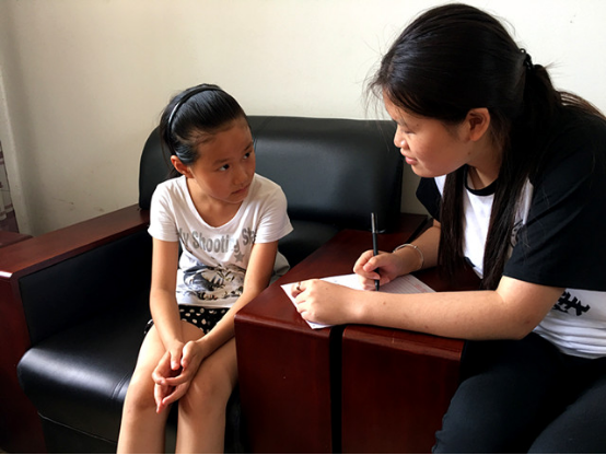 为进一步了解当代留守儿童在心理方面存在的问题,小队特别开展了一场面对面、一对一的心理辅导。队员们积极筹备活动教室,反复组织语言。“现在和谁住在一起?”“学校的条件怎么样?”“在学校和同学们交流怎么样?”面对实践队员们温柔亲切的话语,孩子们都打开心窗,吐露藏在心中的话语。队员们注意孩子的情绪,不着痕迹地化解着孩子的心理问题,看着孩子们带着笑容走出辅导教室,队员们都觉得那真是七月里最好看的一道风景。这些孩子的内心敏感,却不得不在这样的环境中坚强起来,他们,急需这个时代的关爱与呵护。