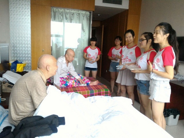 本网讯(教科院 金相宜)2016年7月5日,教科院赴“全心全益”赴韩城情暖夕阳团队活动继续进行。在全体人员的努力以及夕阳红养老院相关领导的支持下,我团队在夕阳红养老院开办的活动被老人热烈欢迎。老人们热情高涨,积极参加活动并积极给予反馈,队员们面对年龄大有一定交流障碍的老人,付出了更多努力与精力,以保证每个老人都能感受到我们的关怀。