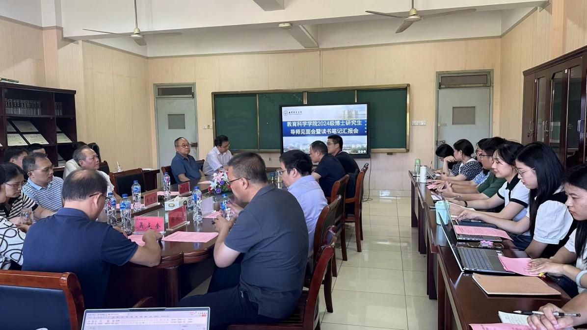 2024年9月18日下午,教育科学学院2024级博士研究生导师见面会暨读书笔记汇报会在学院408会议室隆重举行。教育学一级学科博士学位点负责人朱家存教授、2024级博士生导师代表及2024级全体博士生参加了此次会议,会议由副院长吴文涛主持。