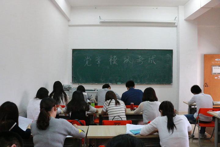 本网讯(研究生 罗菊)为积极响应院党委开展“两学一做”学习教育测试活动,做好迎考工作,我院研究生党支部于5月26日下午一点,分别在研二、研四教室举行党章党规及系列讲话模拟测试。