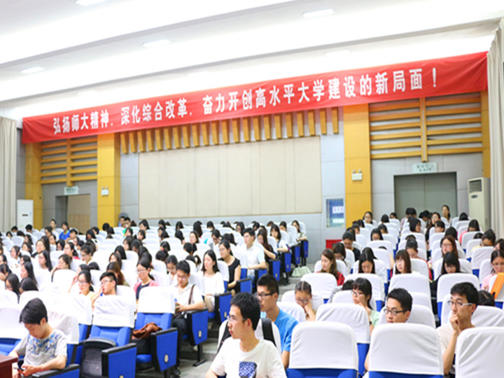 孙教授的报告围绕三个主题,如何研究教育现象的基本范畴、教育现象的基本范畴是什么以及教育现象基本范畴研究的价值。第一个问题是教育现象范畴研究的方法论有人为抽象方法论和自然生成方法论两种基本的类别。孙教授进一步提出了教育现象基本范畴是由教育活动、教育体制、教育机制和教育观念四个方面的逻辑统一。最后,孙教授指出这四种基本范畴可以构建新的教育学逻辑体系,也可以为教育改革的实践厘清思路,更可以拓展应用到社会科学来解释整个人类社会现象。全场报告是一场偏哲学化的报告,但是,孙教授以他自身独特的个人魅力,并用幽默不失严谨的语言使整个会场的气氛非常融洽,期间他还用全英文的表达方式充分地展现了他深厚的学术功底,向在场的师生介绍了一场不一样的学术盛宴。孙教授在谈到自身经历时,情至深处以一首《身在他乡》反思回顾了一生,其歌感人至深,其话引人深思,使报告会达到高潮,掌声经久不息。
