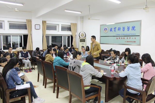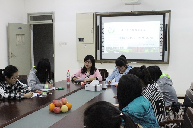 本网讯(教科院 胥仙红)为发挥优秀大学生的榜样引领作用,5月8日晚七点,2013级心理学学霸何婷和校“十佳大学生”李书婷应邀做客2015级应用心理学专业,为同学们作了一场如何做好学习生活安排的报告。2015级应用心理学的同学参与了座谈会,座谈会由心理健康委员沈施鑫主持。