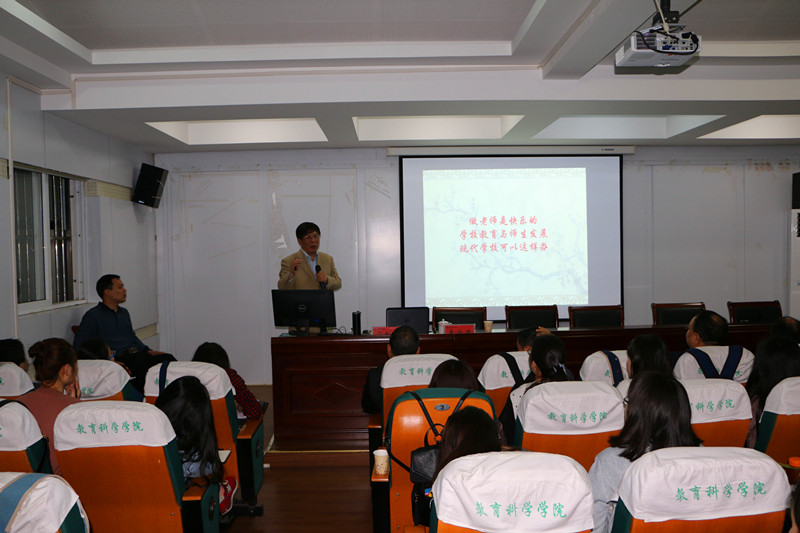 本网讯(教科院 张志华 孟庆娟)2016年4月26日上午8点,上海市教育功臣、特级教师、特级校长、打虎山路第一小学教育集团的理事长、打虎山路第一小学校长卞松泉,受安徽省教师教育协同创新中心邀请,针对大学教师如何深入中小学做教科研,做了题为“教师的人文素养与职业成长”的专题讲座。协同创新实验校校长(园长)、挂职副校长(副园长)、首席专家、学科工作站兼职研究员,以及教育学本科生与研究生近百人聆听了讲座。讲座由教育学系主任、延安小学挂职副校长辛治洋教授主持。