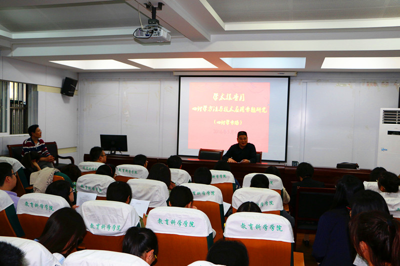 本网讯(教科院 裴扬)2016年5月4日下午,学术活动月之心理学专场“心理学方法与技术应用专题研究”学术报告会在三楼学术交流中心如期举行。院长桑青松教授、心理学系教师、研究生近百人参加了报告会,报告会由葛明贵教授主持。