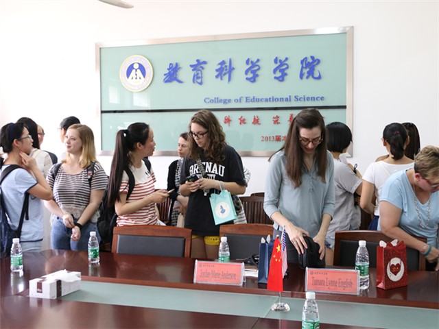 本网讯(教科院 吴素婷 代青清)初夏芜湖令人心醉,中美文化细水长流。5月6日上午,美国布莱诺大学代表团一行10人抵达我院进行交流访问,此次活动为期八天,旨在增进两校学生之间的情感,帮助我院同学更加了解布莱诺大学的办学风格,促进教科院中美班办学的长久发展和创新进步。