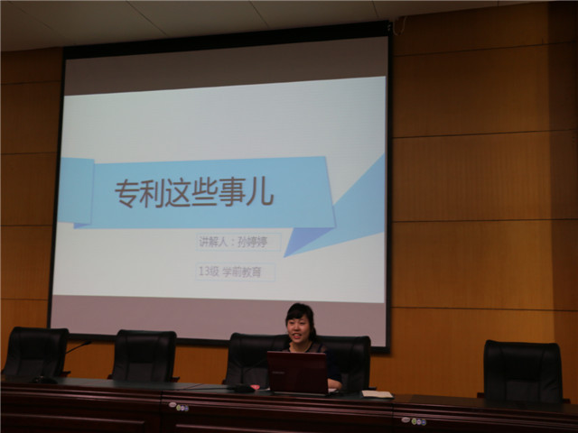 姚莉莉从“三项大赛”举办的时间入手,重点为同学们讲解了一下“三项大赛”的具体组成结构。在对动漫与数字艺术大赛的讲解中,她温馨提示同学今年的大赛有所变动,分成专业和非专业两组,这使得教科院学子有更多的机会站上舞台。针对三项大赛中尤为引人关注的专利大赛,姚莉莉强调,更多的创意作品都来自生活,鼓励同学们都应有自信参与其中。