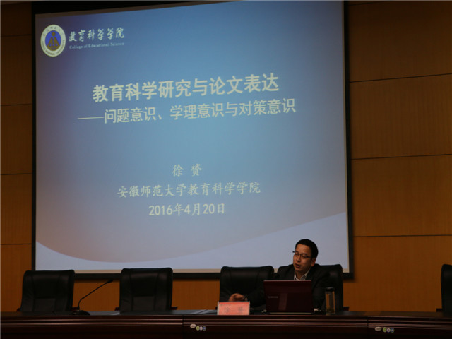 科研论文大赛作为培养学生科研能力的重要平台越来越受到学生的关注。徐赟从问题意识、学理意识与对策意识三个方面对论文进行了讲解。他提醒大家要从当今时代特点入手,在提高自身文化素质的基础上思考当今教育所存在的各种问题,让自己的论文有深度,禁得起推敲。徐赟还认为做论文的人要有专业精神,有针对性的探讨当今时代的问题。论文除了内容,形式也是不容忽视的一部分,徐赟提醒同学们,一定要训练自己的语言正式性,做到字字珠玑,肌理清晰。