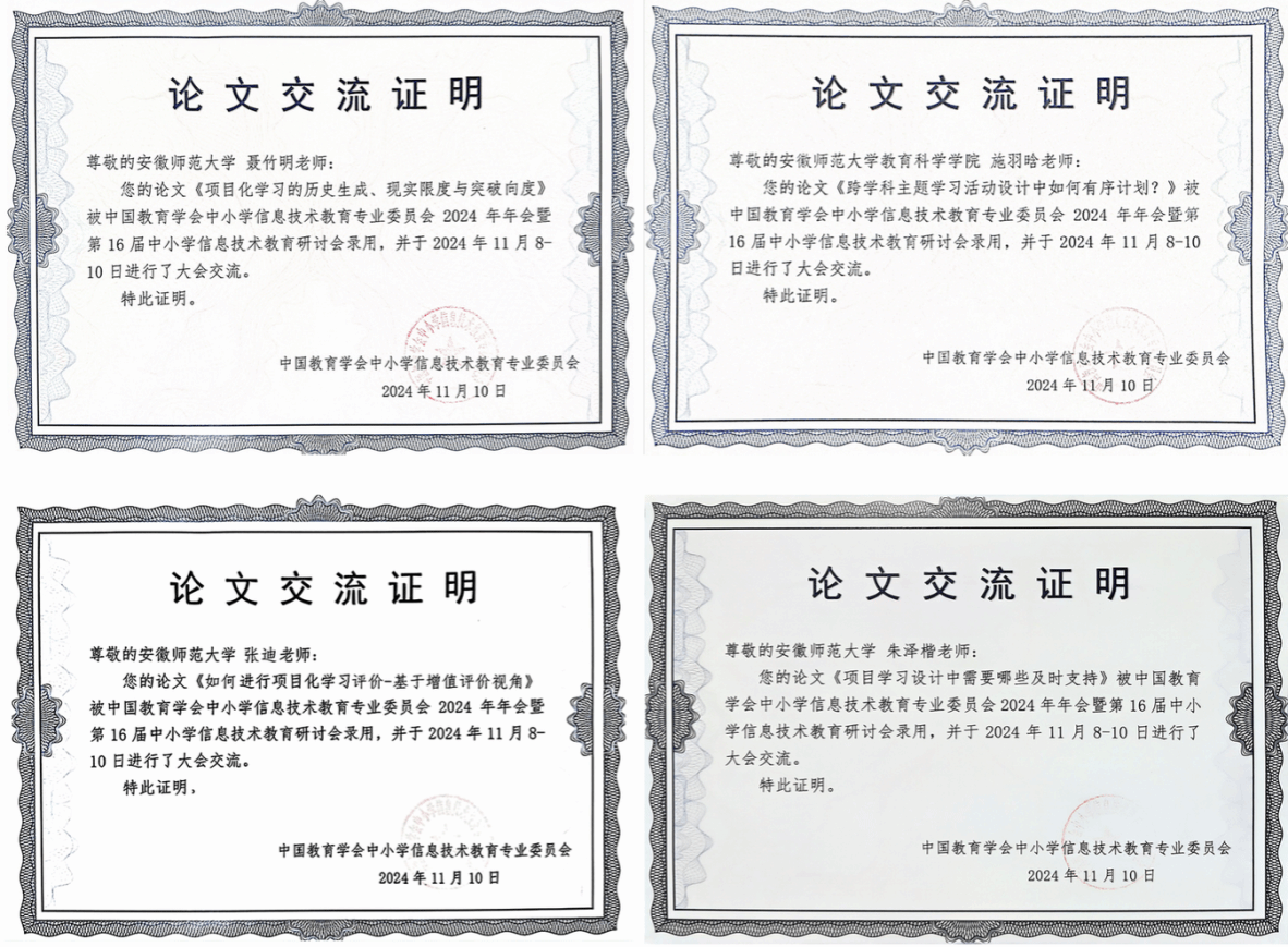 在项目学习设计分享中,宿州市教科所信息技术教研员潘靓老师分享了《项目学习设计中如何设计项目》的实践经验,她对项目设计的细节把握和创新思维为项目学习的实践提供了宝贵的指导。合肥市行知小学夏兰副校长探讨了《项目学习设计中如何科学分组》的问题,她的策略和方法论为优化学习小组的构建提供了新的视角。学院硕士研究生施羽晗、朱泽楷、张洁分别针对《跨学科主题学习活动设计如何有序计划》、《项目学习设计中需要哪些及时支持》、《如何进行项目化学习评价——基于增值评价视角》进行了分享。