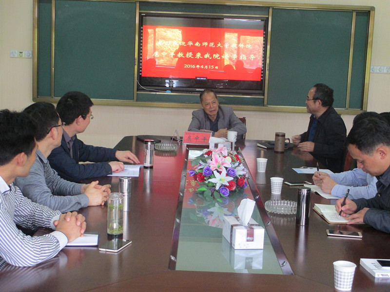 本网讯(教科院 徐赟 孟庆娟)2016年4月15日下午,在学院408会议室,华南师范大学博士生导师扈中平教授应邀与我院师生就学科建设相关问题进行了座谈。座谈会由学院教授委员会主任、学科建设办公室主任周兴国教授主持,学院教学副院长李宜江、科研副院长聂竹明,阮成武教授、查晓虎教授、孙德玉教授、段兆兵教授、辛治洋教授、周元宽副教授、吴支奎副教授、徐赟博士、尹建锋博士、柳丽娜老师、孟庆娟老师及部分研究生和本科生参加座谈会。