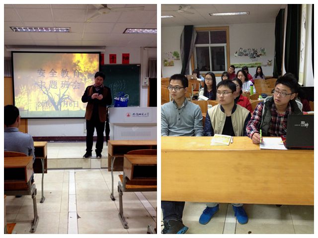 为更好的防患于未然,4月6日晚7点,15级辅导员莫大贡老师为同学们带来了一场安全教育主题班会。在班会上,莫大贡老师首先强调了最近频发的校园火灾,从查寝情况说起,提醒大家平时注意电器的使用情况。会议期间,莫老师重点讲述了安全须知,提醒各方面人员明确自己的责任,为学生的安全保驾护航。春季灾情频发,除了火情,还要注意的就是卫生安全,莫大贡老师以结核杆菌为例,重点讲述了该菌体的活动周期,提醒大家平时注意自身及宿舍卫生环境,强调如有情况,要及时就医。从心理与生理说起,两面防护,给自己的生命安全做一份保障。亲切的话语引得学生赞同的同时也陷入了思考,真切的考虑自身的安全与学校的安全。
