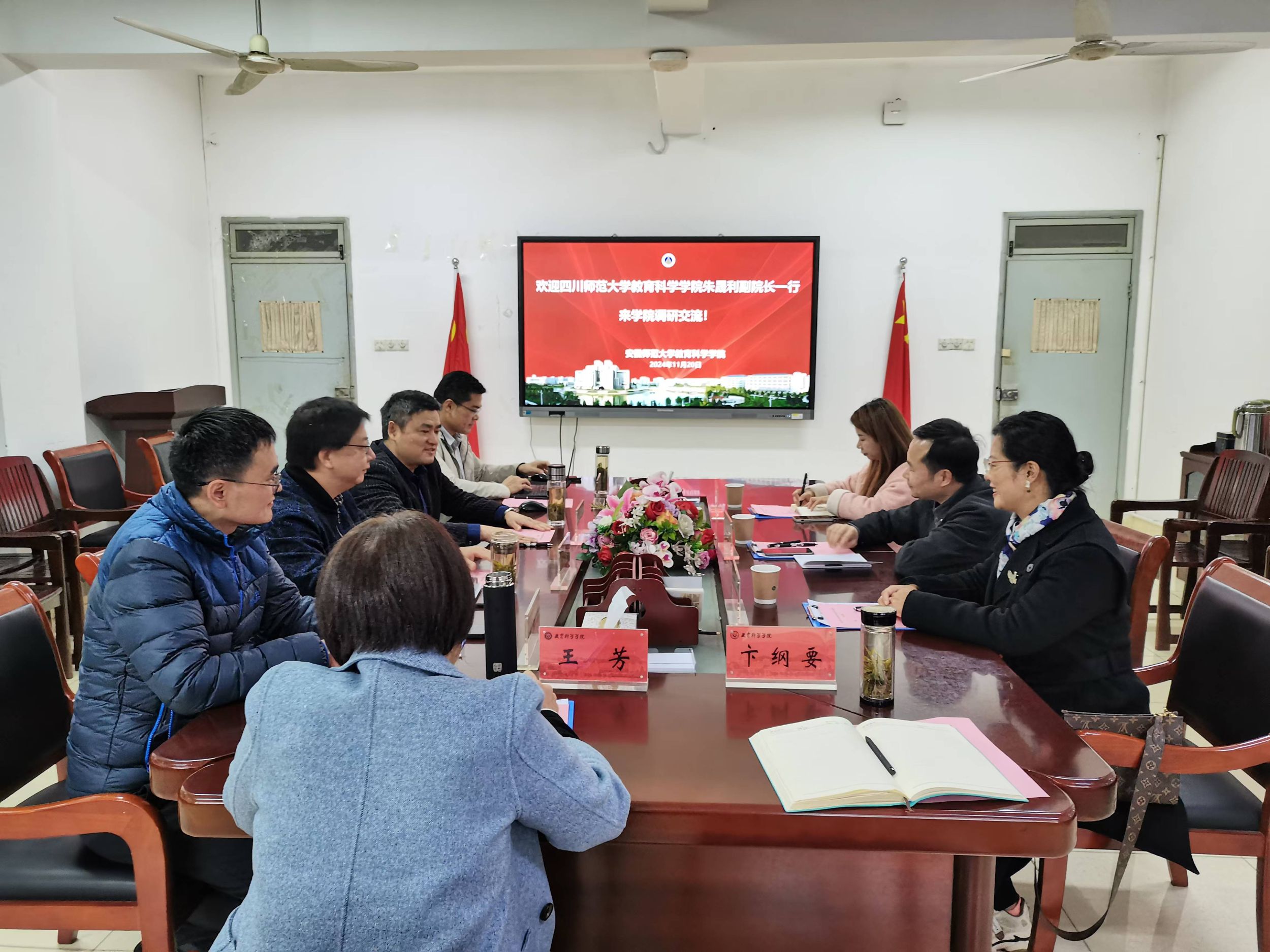 11月20日下午,四川金年会副院长朱晟利教授一行来我院调研交流。学院领导许国飞、李宜江、韩建涛、吴文涛,小学教育专业负责人王芳等参加了调研交流座谈会,座谈会由学院院长李宜江教授主持。