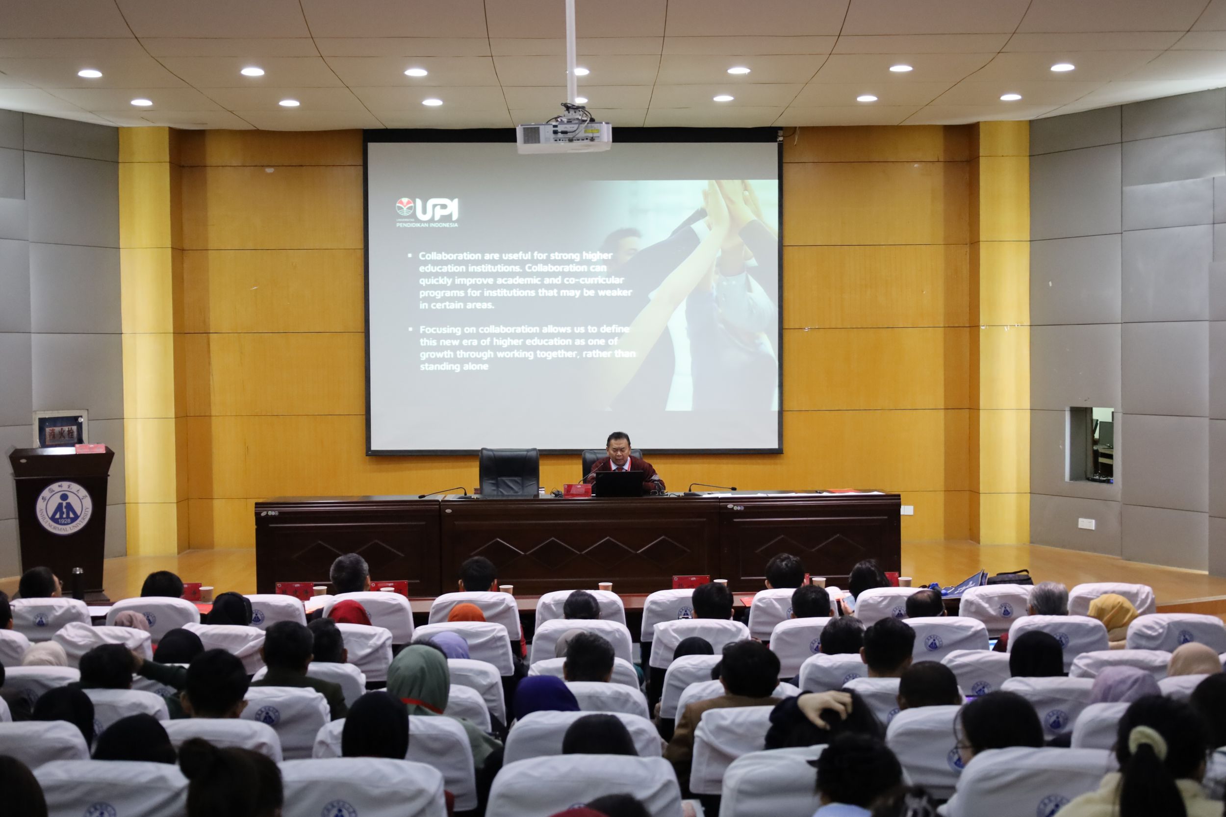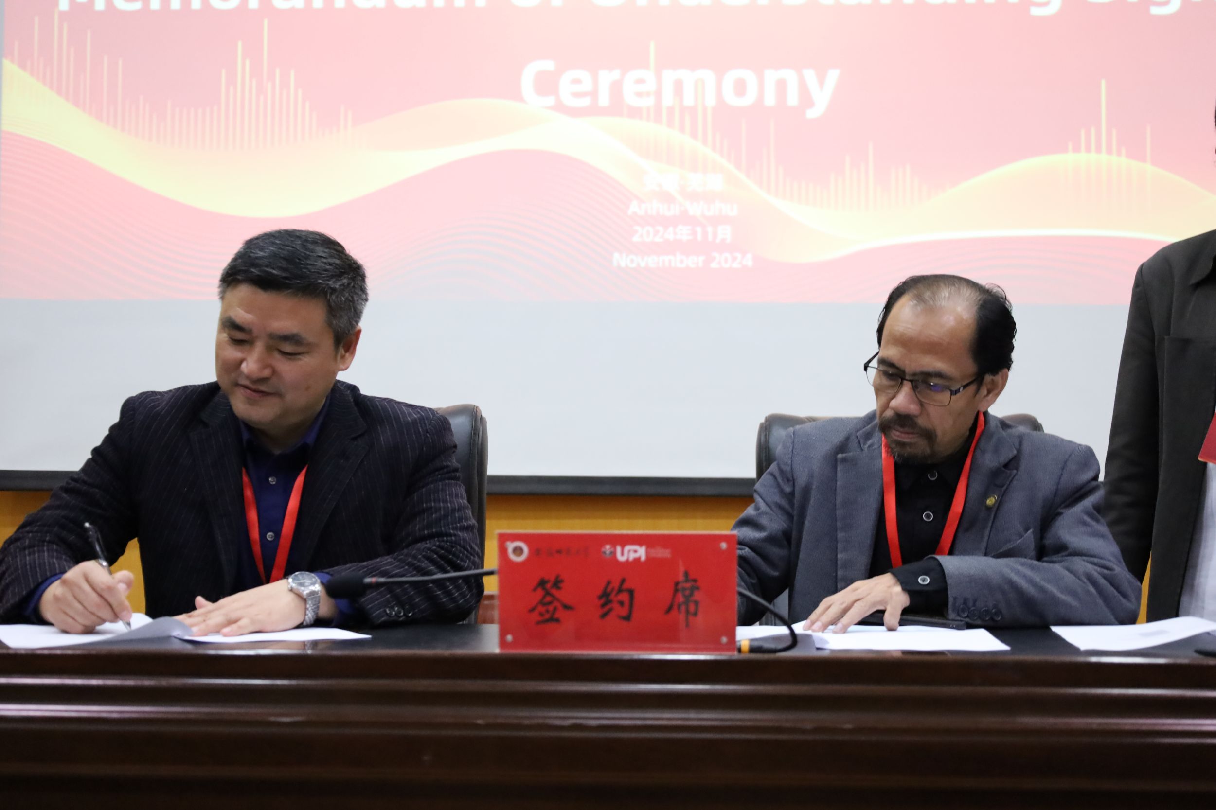 李宜江教授致欢迎辞。他从跨文化视角出发,表示两校合作是对全球教育发展这一重要议题的实践与落实,紧接着从安徽师范大学办学历史、安徽金年会学科建设、人才培养等方面向与会领导嘉宾做了详细介绍,并对本次会议给予厚望,预祝会议圆满成功。鲁迪·苏西拉纳教授代表印尼教育大学教育科学学院致辞。他感谢安徽师范大学,特别是安徽金年会的精心安排,介绍了印尼教育大学教育科学学院的办学历史和学科特色,期待两天的交流能为进一步的合作打下坚实的基础。随后,安徽金年会与印尼教育大学教育科学学院签署谅解备忘录。