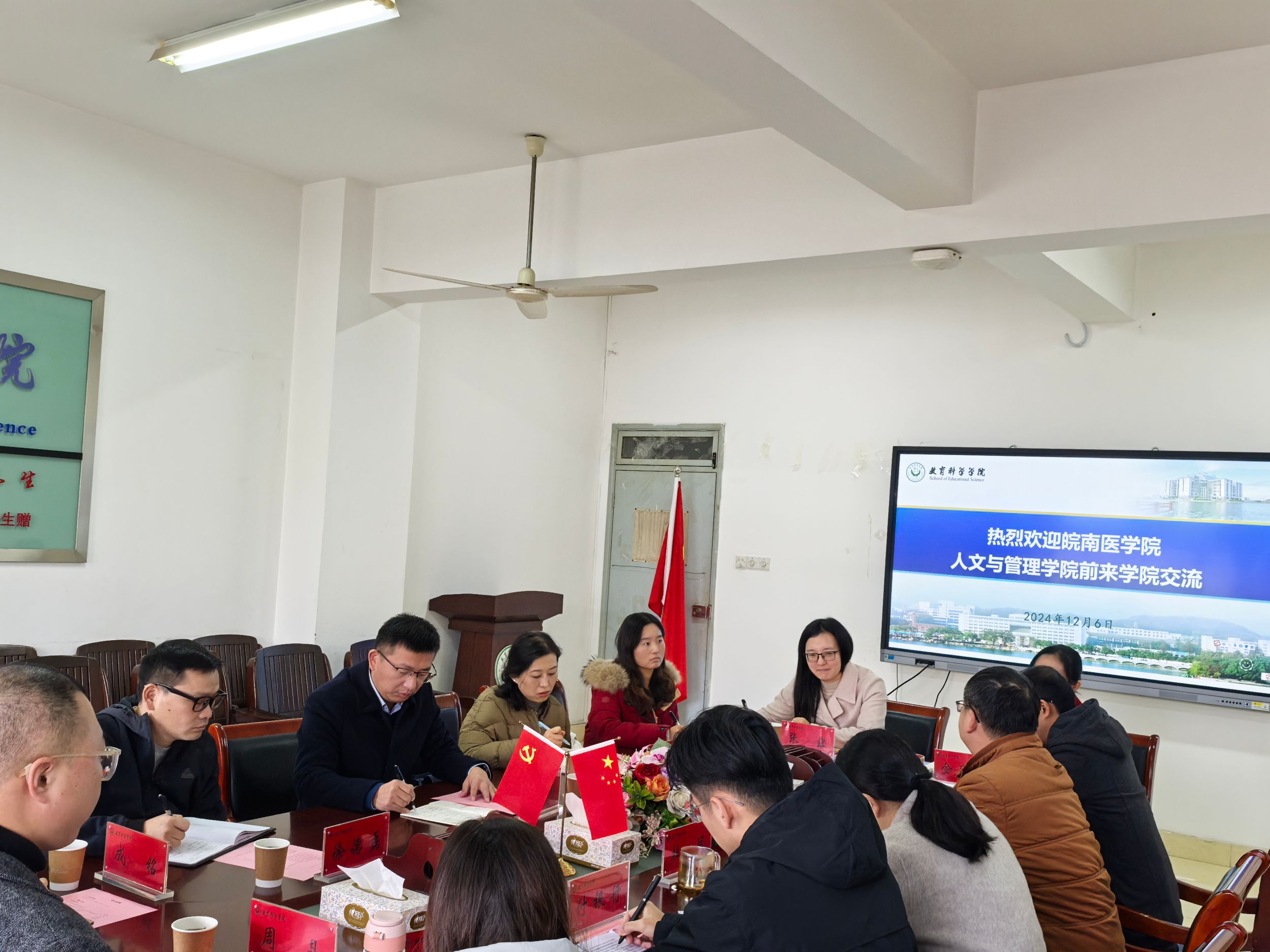 许国飞对皖南医学院人文与管理学院学工团队的到来表示热烈欢迎,并介绍了学院的基本情况。两校学工团队就心理健康、辅导员队伍建设、学风建设以及本科生就业工作等方面进行了深入交流。