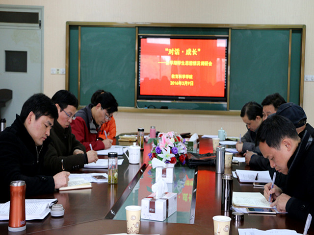 本网讯(教科院 代青清 龚伟)为全面深入了解学生所思所想,切实提高思想政治工作的针对性和实效性,解决好学生关心的焦点、重点和难点问题,帮助学生更好地规划大学生活。3月9日下午教科院在学院408会议室召开了新学期学生思想情况调研会,针对新学期学生的思想情况进行了专项调研。院领导班子成员,各专业负责人、全体辅导员、教学办老师、院学生会主席以及各年级专业代表参加了本次调研会,会议由院党委副书记张如华主持。