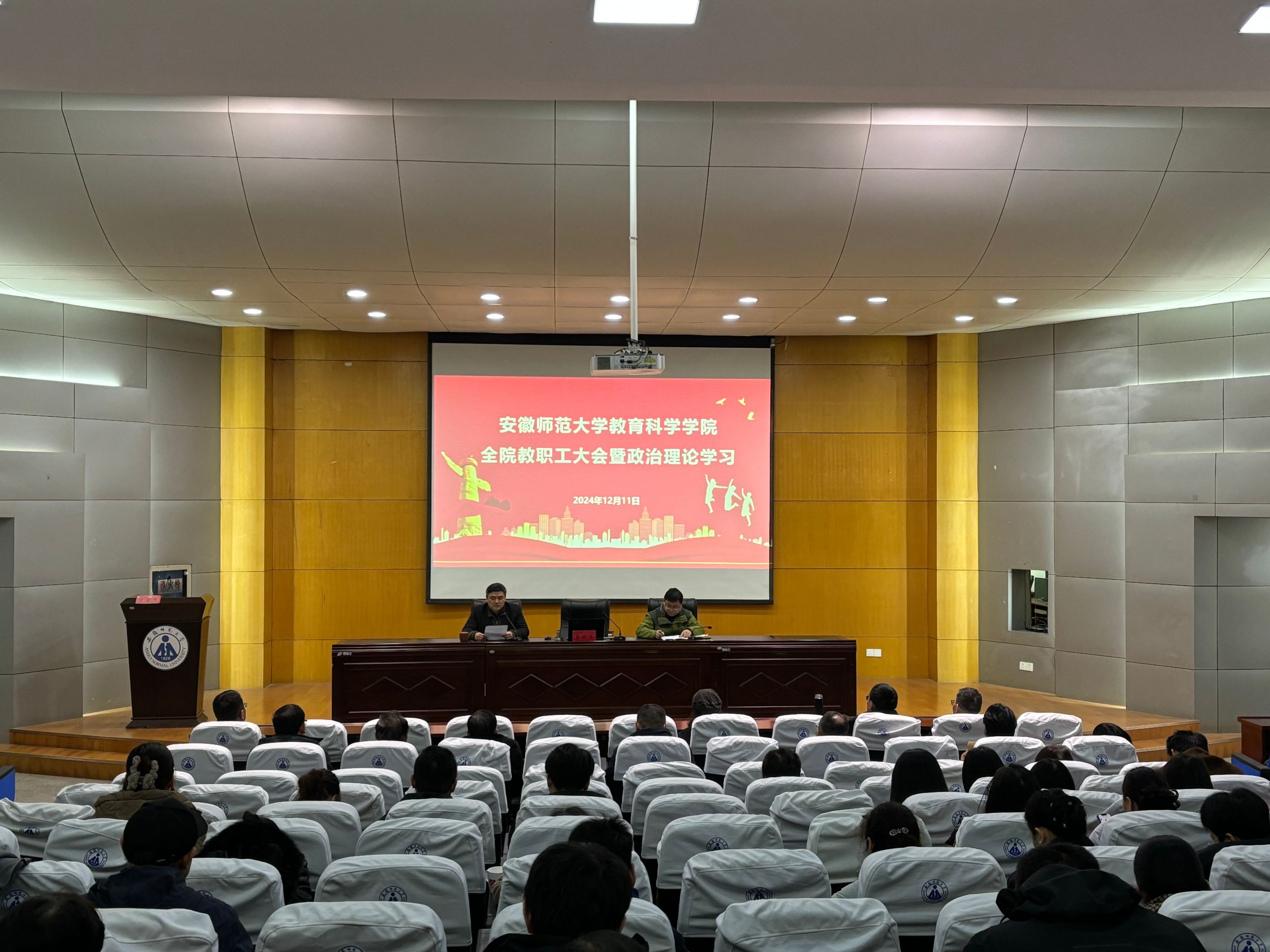 12月11日下午,教育科学学院在田楼报告厅召开全院教职工政治理论学习会,会议由学院党委书记许国飞主持,全体教职工参加会议。