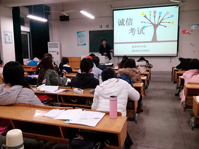 本网讯(教科院 万璇)为进一步弘扬诚实守信道德风尚,强化学生遵守考试纪律的意识,自12月9日开始,教科院面向学院全体全日制本科生开展了以诚信考试为主题的系列宣传教育活动。旨在增强学生诚信意识,营造诚信考试的良好氛围以及树立优良的学风和考风。