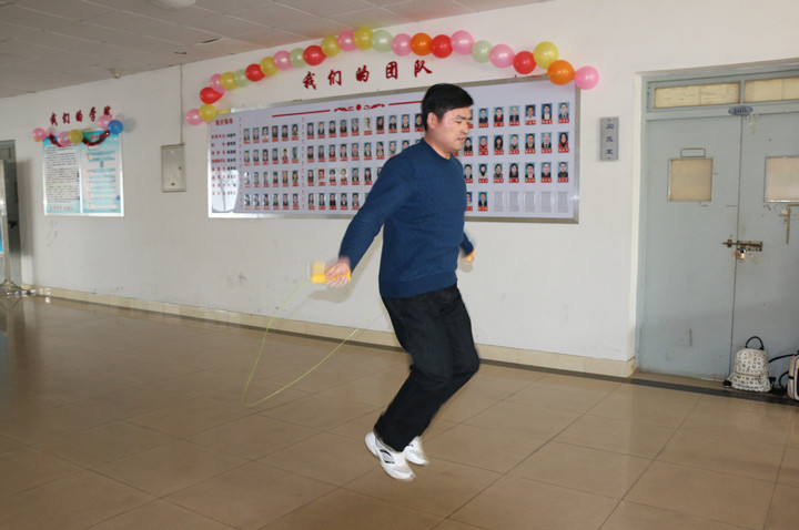 游艺活动丰富多样,既有“贴鼻子”、“通俗桥牌”娱乐类的活动,又有 “跳绳”、“定点投标”等运动类的活动,还有“夹乒乓球进筐”技巧性的活动。各活动区域,参与面广,大家排着长长的队伍有序进行活动。“贴鼻子”游戏要求参赛者蒙上眼睛,从起点原地转三圈,走到人头像前,贴上鼻子,各位参赛者将鼻子贴的形态各异,不时爆发出阵阵笑声; “掼蛋”比赛时,选手们精确计算、谨慎出牌,队友相互协作、默契配合,掼出了水平,打出了风采。“跳绳”活动现场男教师也不甘示弱,尽情释放各自的激情,赢得了在场观众的阵阵掌声;“夹乒乓球进筐”比的不仅仅是数量,还有速度和技巧;“定点投标”比的是准确性,大家有的摩拳擦掌、跃跃欲试,有的为同事加油鼓劲,现场掌声、呐喊声不断。期间,校党委常委、纪委书记程度书记因公途经我院,也兴致勃勃地察看了我院职工小家建设情况。