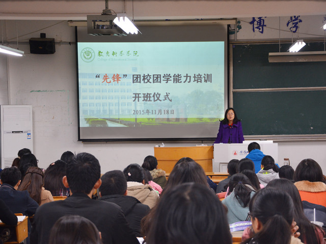 “先锋团校”致力于提升我院团学组织的工作能力,展现学生干部的精神风貌,旨在打造一支作风硬,纪律严,能力强的精英团队。学院11月18日下午在田楼8302教室举行了开班仪式,院党委副书记张如华、院团委书记龚伟莅临指导,院团委学生会全体成员和2015级班委全程参与。