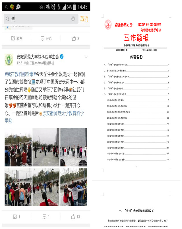 为期1个月的首届“先锋团校”在12月完美结束,期间学院领导、老师高度关注、积极指导工作进展,院学生会负责人倾力打造教科院“先锋团校”品牌力量。培训结束之后,与会成员进行了互动交流,从团组织重要负责人到各部门工作人员,每个人都发表了自己对于团的认识以及未来的工作展望,教科院官方微博对此进行了专项活动报告,制作工作简报,总结经验。据悉,我院还将继续举行形式多样的培训活动,从而不断提升我院学生干部的工作能力和品德修养。