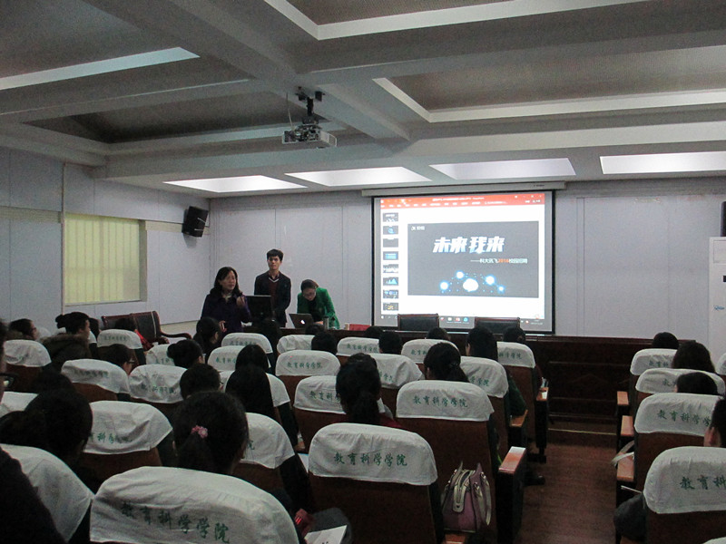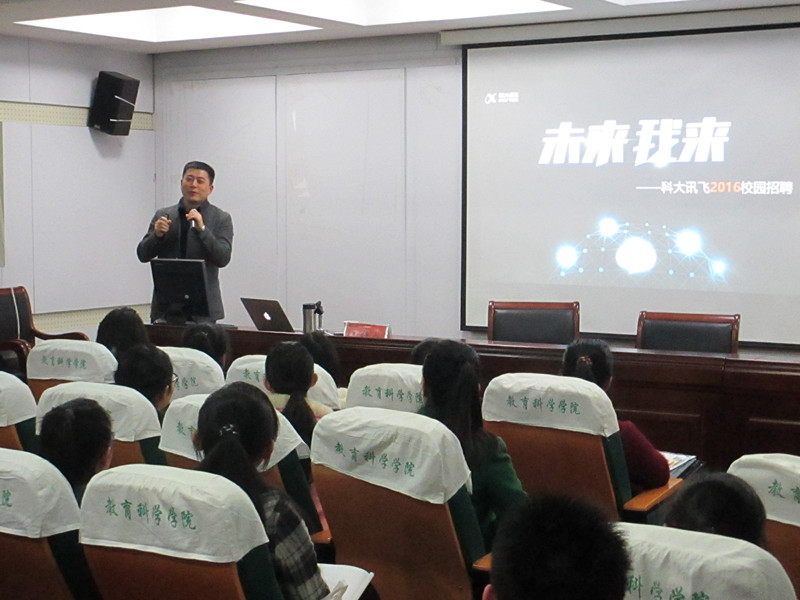 本网讯(教科院 张玉楠)又是一年毕业季,又是一度招聘热。为方便广大同学就业,11月19日、20日上海矢锐文化发展有限公司、安徽时代传媒文化股份公司、科大讯飞等多家用人单位来我院三楼学术交流中心进行招聘宣讲,院党委副书记张如华、毕业班辅导员孟庆娟、2016届本科毕业生参加了招聘会。