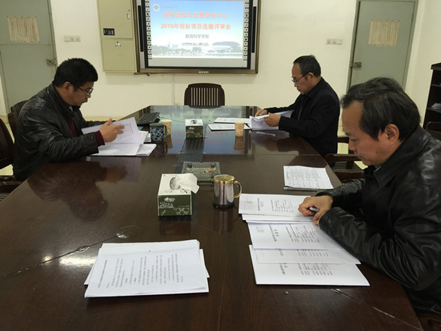 本网讯(教科院 马兴)11月23日上午,安徽师范大学教育改革与发展研究中心2016年重点项目招标评审会,在中心会议室举行。基地执行副主任周兴国教授,副主任葛明贵教授、阮成武教授参加了此次评审会。