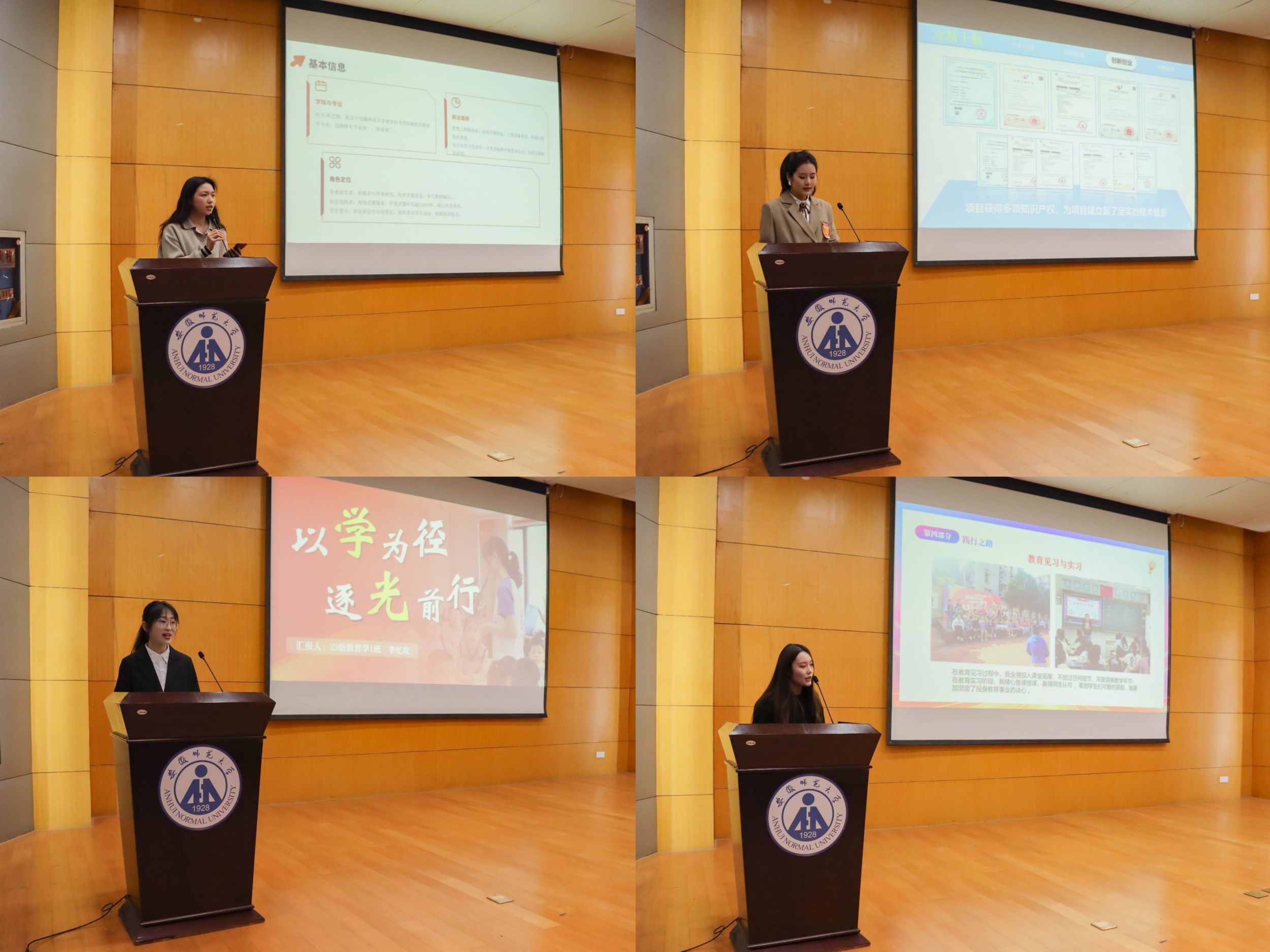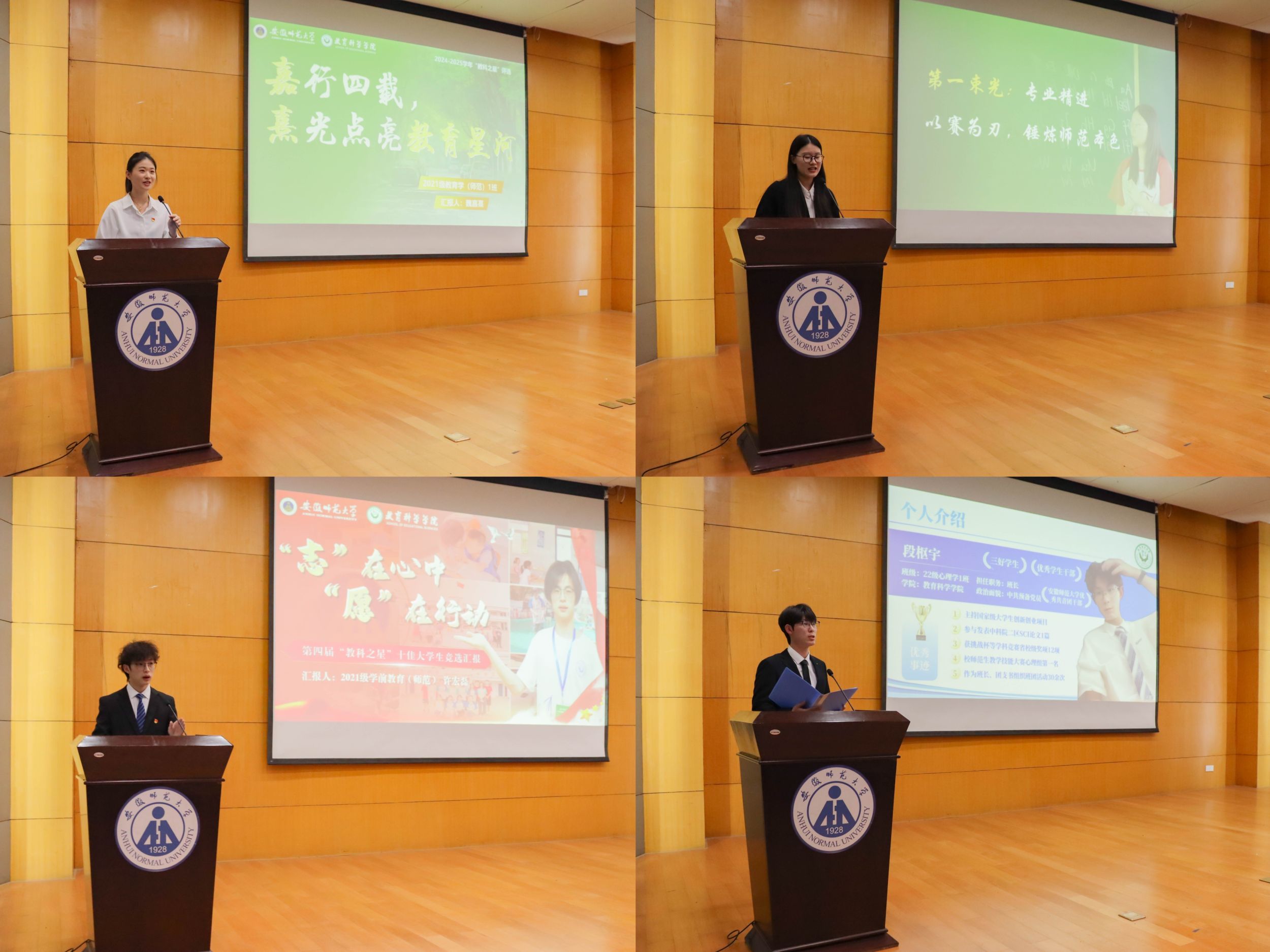 经过自主报名,班级推荐,学院审核等环节,共23位候选人参与现场汇报答辩。候选人通过PPT展示,围绕“科技创新与自主创业”“道德示范与自强奋斗”“社会实践与志愿服务”“学风创优与生态保护”“文艺创作与体育锻炼”五个类别,结合学术学习、思想引领、学科竞赛、社会实践等经历与成果进行汇报,展现了师大优秀教科人“追求卓越,全面发展”的精神风貌和杰出风采。