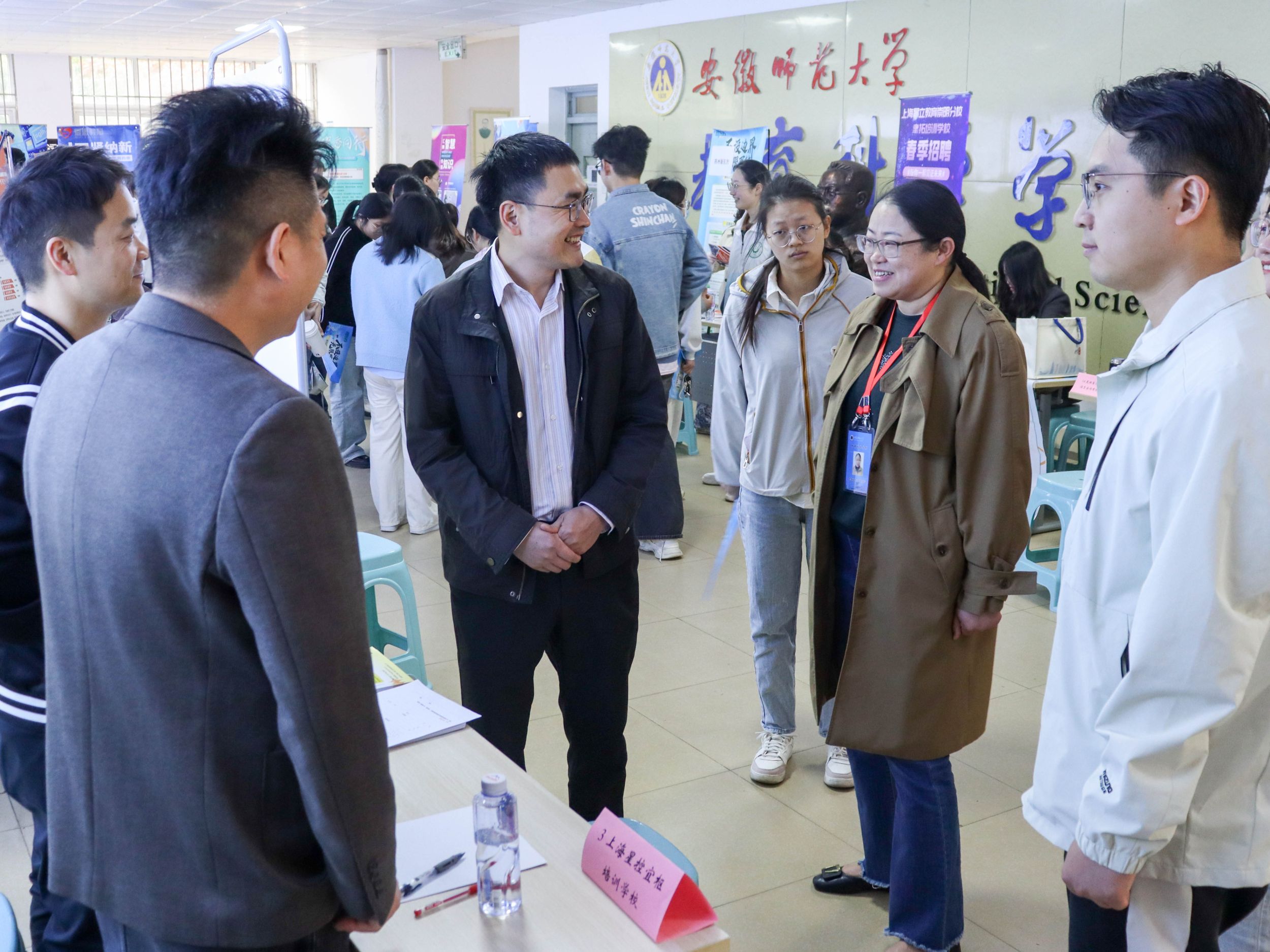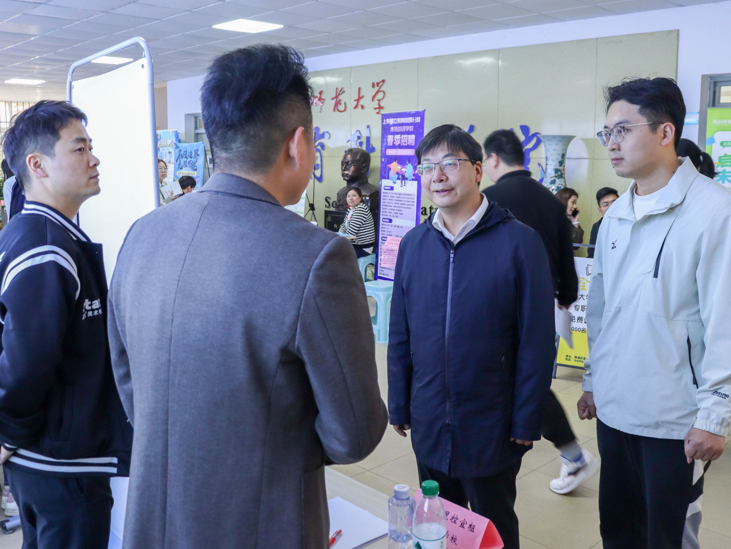 4月12日下午,为助力教育科学学院应届毕业生精准对接就业市场,由教育科学学院主办的“育”见未来——2025年春季专场招聘会在教育科学学院一楼大厅圆满举行。学院党委书记许国飞、副书记杜凤、副院长韩建涛、毕业班辅导员赵茜和张理强等深入招聘会现场,与用人单位及毕业生展开交流,全面掌握毕业生的简历投递状况,同时了解用人单位在人才培养方面的具体需求。