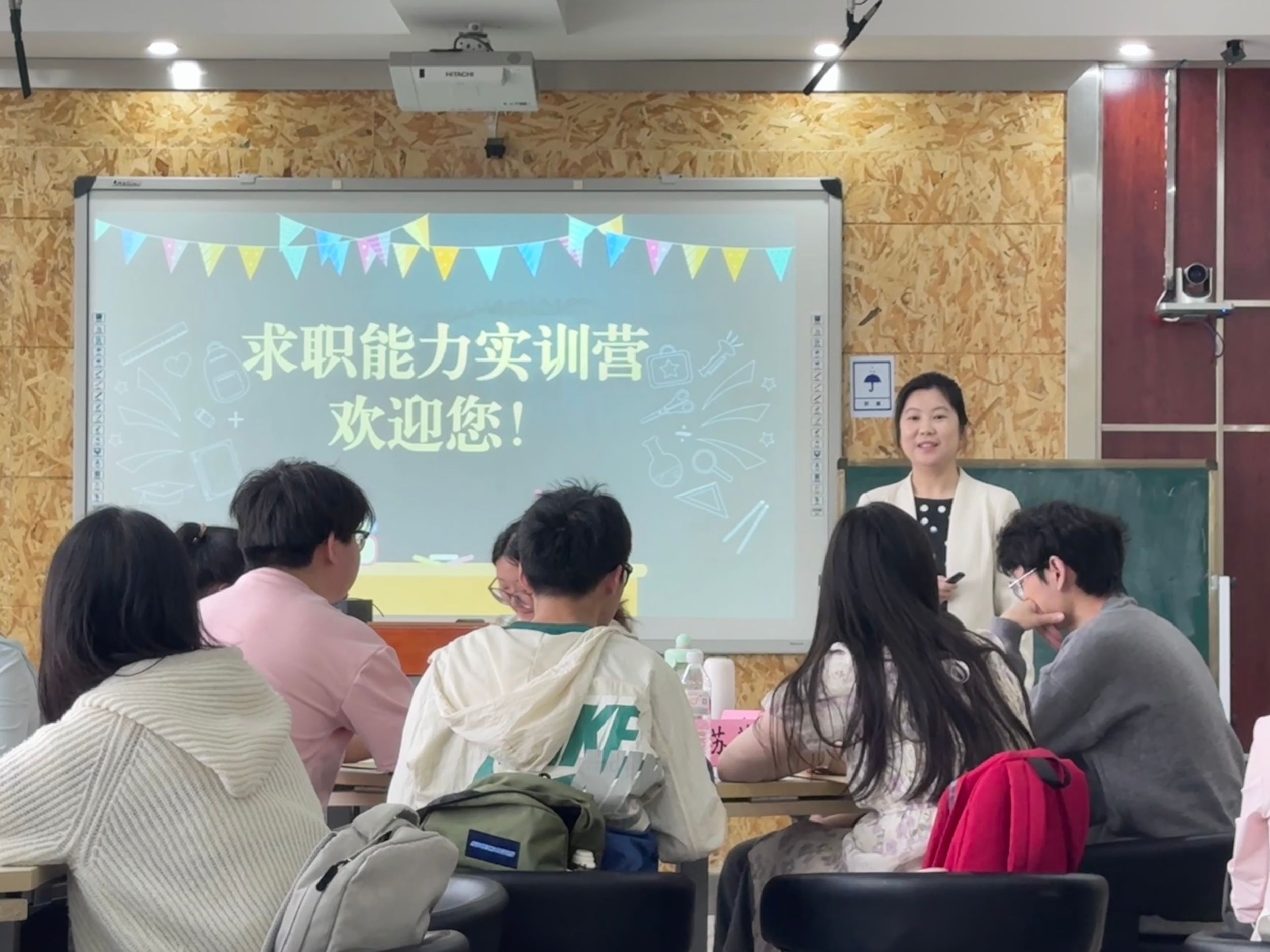 本次求职训练营以激发学生就业意识、明确就业目标为内容,督促学生制定求职计划、开展就业实践,提升就业技能。4月19日上午的开班仪式结束后,求职能力实训国家级培训师、人社部“互联网+职业指导”专家杞璇通过各类小组活动,让同学们明确每个人在职场都应各司其职,并通过“star法则”引导学生明确职业目标和定位,认识自我意向岗位。合肥市人社局公共就业人才中心交流合作部部长、安徽省职业指导大师林云涛以游戏互动开场,引出个人挖掘自身潜能和展示自我优势的话题,并展开对求职简历制作的讲解,强调求职简历贵在简,重在历,应围绕目标岗位需求展示个人特长。