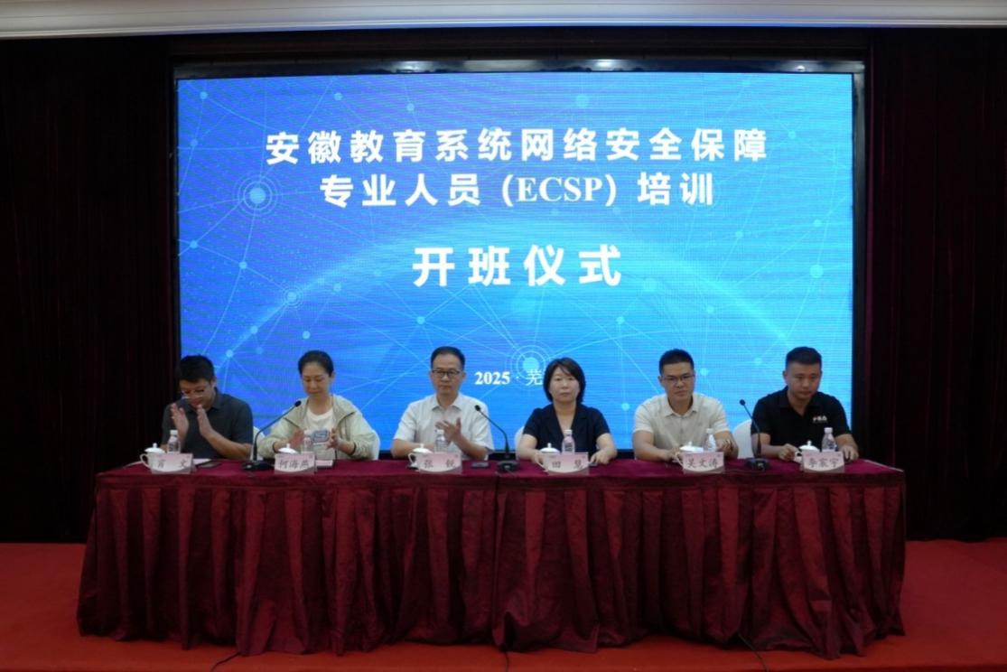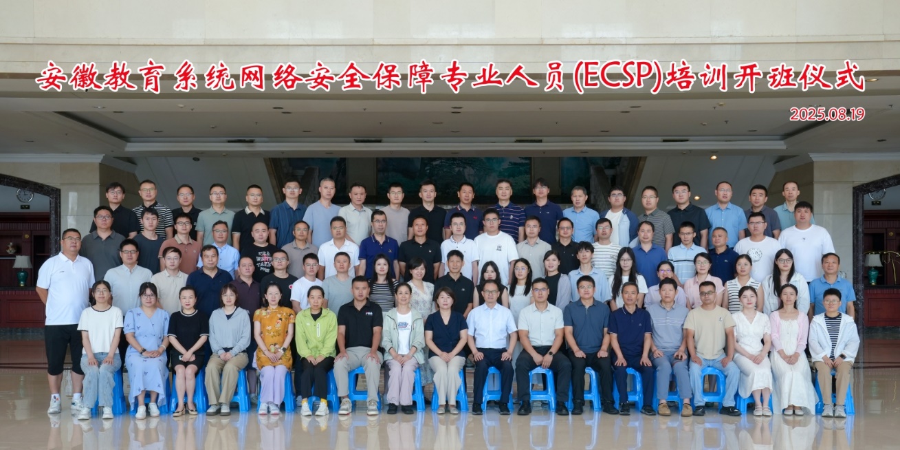 8月19日-22日,2025年教育系统网络安全保障专业人员(ECSP-M安徽)培训班顺利开班。教育部教育管理信息中心(教育信息安全等级保护测评中心)ECSP项目主管田慧、安徽省教育厅信息中心主任张锐、安徽金年会院长吴文涛、副院长何海燕等出席开班仪式并致辞,来自教育部相关部门、安徽省内高校、市县教育局等60个单位的72名学员参加了此次培训。