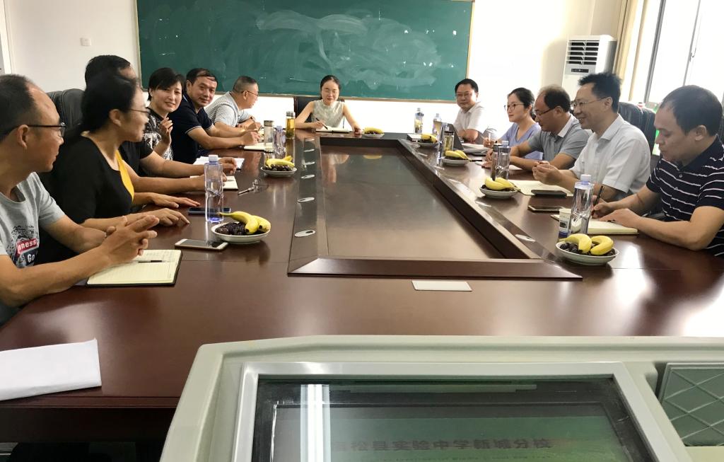 本网讯 教科院 陈娜2019年8月15日上午,教育科学学院党委书记方泓、副院长辛治洋、学科专家吴支奎、陈娜等来到宿松县实验中学新城分校开展“一托一”学科帮扶活动。宿松县教育局副局长谢雯、教育局招生办主任高赛鹏、新城分校校领导、中层干部、学科骨干教师参与此次活动。活动由副校长梅赛红主持。