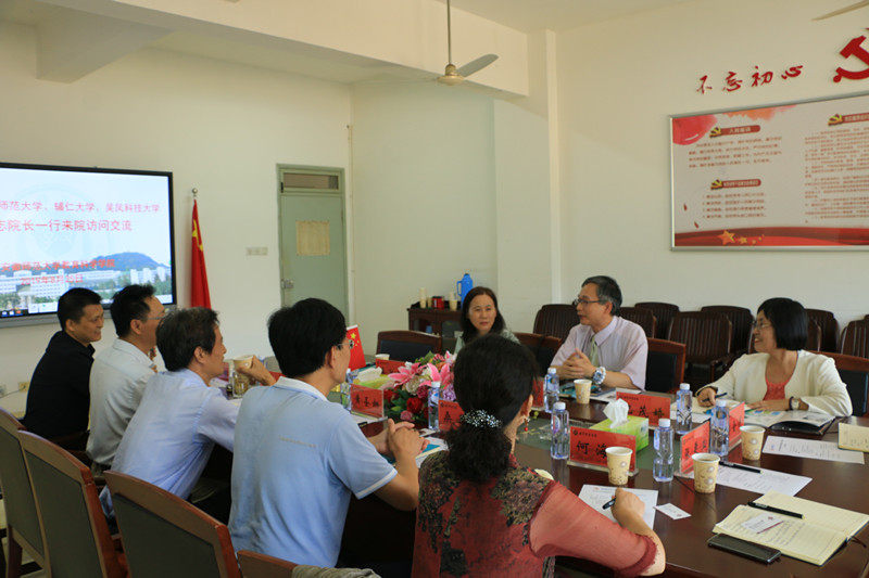 本网讯(教科院)8月25日下午,台湾师范大学教育学院院长、陈学志教授,人事室主任纪茂娇等一行3人来我院访问交流。我校国际交流合作处处长黄圣炯,教育科学学院党委书记方泓、副院长聂竹明、何海燕、张更立等在学院308会议室参加了座谈交流。会议由院长桑青松主持。