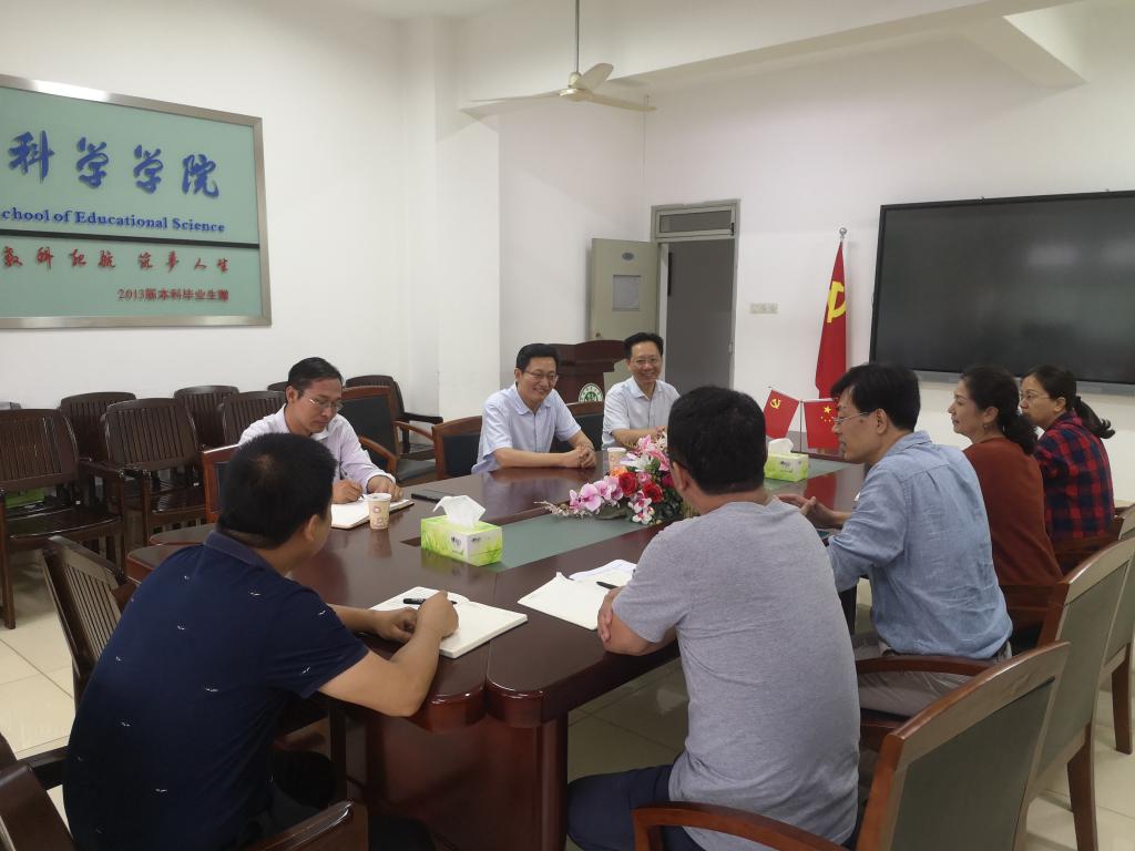 本网讯(教科院)9月3日下午,校长张庆亮到教科院调研指导学院发展工作。校办副主任张顺陪同调研,教育科学学院党委书记方泓、院长桑青松、副书记张如华、副院长聂竹明、何海燕、张更立等在学院308会议室参加了调研座谈会。