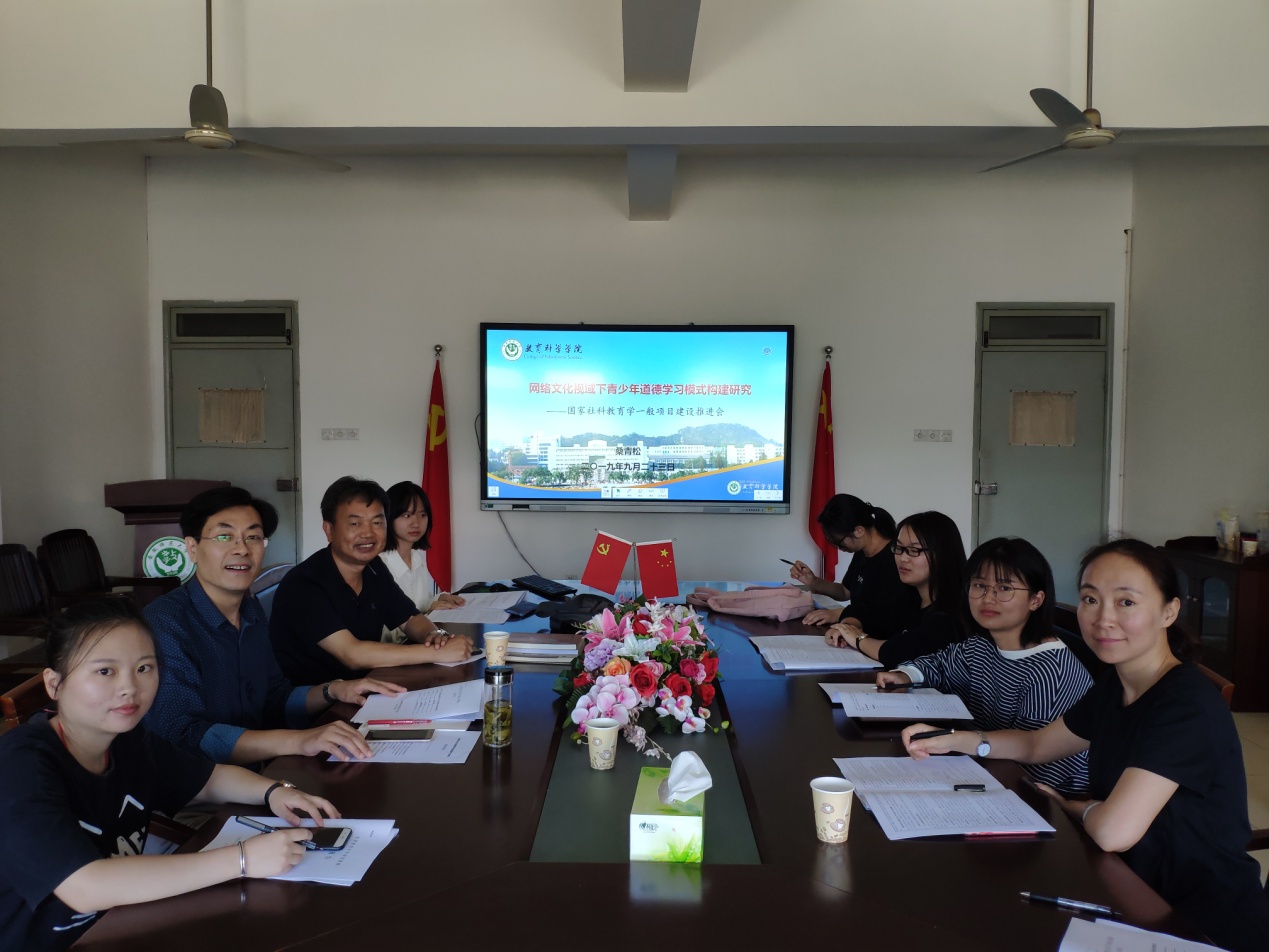 本网讯(教科院)2019年9月23日上午,北京师范大学教育学部教授、博士生导师檀传宝教授受邀对我院国家级研究课题《网络文化视域下青少年道德学习模式构建研究》项目的推进工作进行指导,并召开小型研讨会。我校硕士生导师全莉娟老师以及部分心理学研究生在学院308会议室参加了此次项目推进会。会议由院长桑青松教授主持。