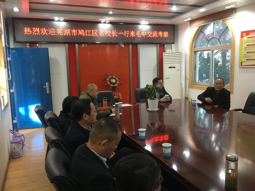 考察团首日先来到省级示范学校毛坦厂中学进行访问。毛中党委副书记周忠等热情接待了考察团一行。毛坦厂中学高三年级部程锦副主任参与交流。