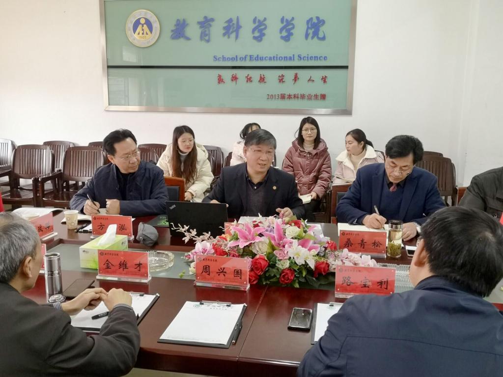 (本网讯 文/杨文静 图/张大强)12月23日上午,华东师范大学终身教授、博士生导师、华东师范大学职业教育与成人教育研究所名誉所长、石伟平教授,孙玫璐副教授,芜湖市教育局职成科陈丽老师,应邀来我院做“职教改革与学科建设”主题交流,院党委方泓书记、院长桑青松教授及学院相关教师出席本会,研究生到场学习。本次会议由桑院长主持,向石伟平教授一行表示热烈欢迎之后,桑院长和与会专家交流了我院学科建设发展情况。