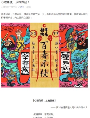 2020年1月29日,安徽省心理学会理事长、博士生导师、葛明贵教授组织动员全省心理学工作者,以安徽省心理学会名义发布了《关于开展新型冠状病毒感染的肺炎疫情防控心理服务的倡议》。同时,安徽省心理危机干预学会副会长、心理学副教授何元庆和安徽省社会心理学会副会长、心理学副教授王道阳也组织相关人员分别以各自学会名义发布了《心理免疫,从我做起》的倡议书和《公众疫情防控的心理自助建议》的心理援助建议。