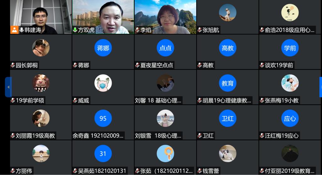 本网讯(教科院 张旭航)6月13日下午,我院特邀中国心理卫生协会大学生心理咨询专业委员会主任委员、教育部普通高校心理健康教育专家指导委员会委员、清华大学学生心理发展指导中心主任李焰教授,基于腾讯会议平台开展以“临床心理学的历史与展望”为主题的学术报告。此次报告由我院健康与咨询心理学硕士点负责人方双虎教授主持,韩建涛副教授以及相关专业研究生共计120余人参与线上学习。