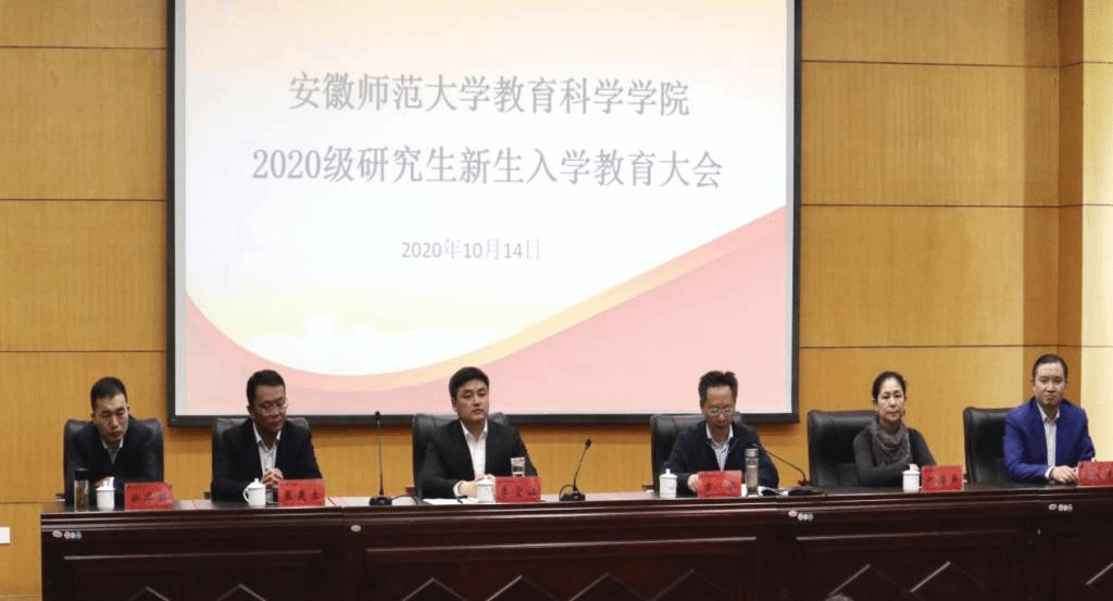 我院校友、泾县风华教育校长、2011届毕业研究生徐华明在发言中表达了对学院的感恩之情,并分享了自己的创业经历。在创立风华教育的过程中,他坚持“有文化才有学校”的信念,扎根中国大地办教育,为泾县民办教育做出了应有的贡献。高年级研究生代表周晴深情寄语新生要深入学习专业知识,勇于攀登学术高峰,从而实现“探究”到“创造”的跨越。博士研究生新生代表柯文涛表示在新的征程中应坚守敬畏知识、不忘初心,健全体格、培养爱好。2019年安徽师范大学研究生支教团成员、2020级硕士研究生新生代表范晨晨结合自身西部支教的经历,呼吁新生秉持知行合一的教育理念,积极参加教育实践,实现全面成长。